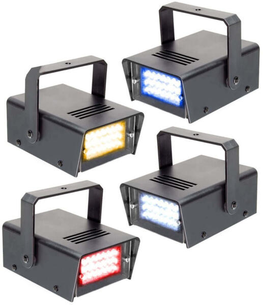 A Beamz Mini RYBW Led stroboszkóp szett egy 4x24db-os 5mm-es, 4 színű LED-ből álló szett. A 4 szín a piros, sárga, kék és fehér. A LED technológiának számos előnye megfigyelhető a lámpa szetten, ilyenek a kis elektromos fogyasztás, kis tömeg, valamint gyakorlatilag örökéletű világítótestek. A technológia előnye még a kis hőtermelés ezáltal nem igényel semmiféle hűtést. A LED-ek villogtatása automatikus, melynek sebessége egy potméterrel egyesével állítható. Rendkívül kis tömegüknek és méretüknek köszönhetően könnyen, akár percek alatt felszerelhetőek. Mivel a színek külön-külön lámpatestben vannak így akárhol elhelyezhetőek, egymástól különállóan, akár a szoba 4 sarkában is. A LED technológiának köszönhetően izzó cserét sem igényel. Bármilyen szintű felhasználásra ideális, karaoke bulikba, házibulikba, clubokba, kisebb discokba is kiváló választás.